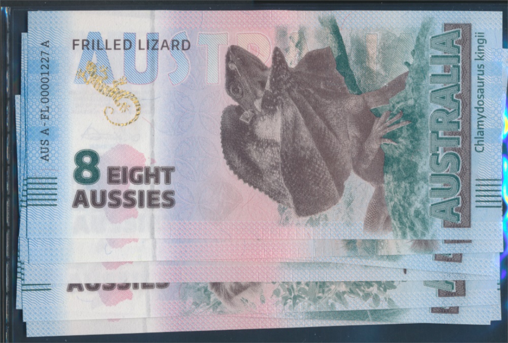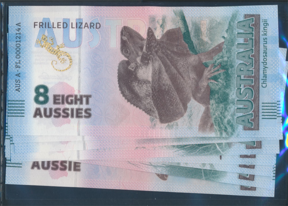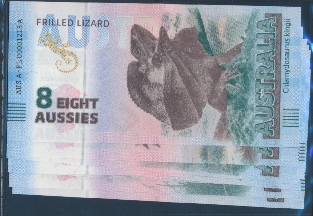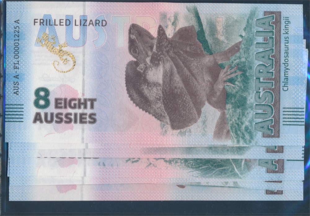 Australia 1 Aussie until 8 Aussies Souvenirschein Australia, uncirculated 2025 Animals australia - 8er set