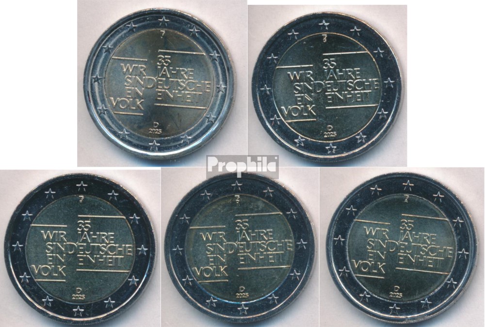 FRG (Federal Republic of Germany) 2025 A,D,F,G,J Stgl./unzirkuliert reissue: . 2025 2 Euro 35 years german Unit